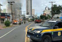 Ambulância pega fogo em calçada do Setor Marista e local é interditado por risco de explosão