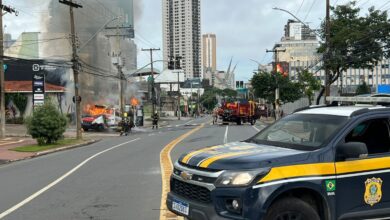 Ambulância pega fogo em calçada do Setor Marista e local é interditado por risco de explosão