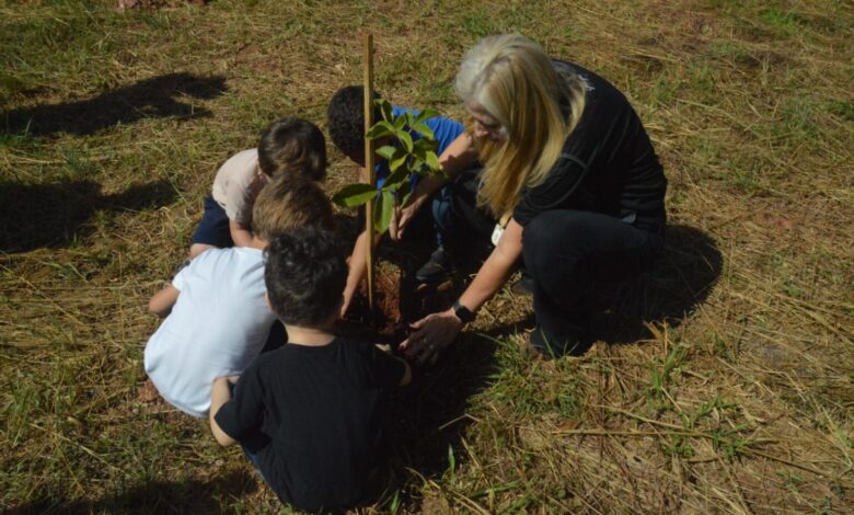 Estudantes da rede municipal plantam 1.500 mudas de espécies do Cerrado em praça de Goiânia