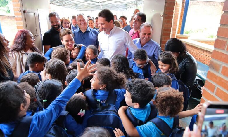 Recepções calorosas, abraços coletivos, gestos de gratidão que emocionaram até os corações mais contidos e discursos enfáticos em defesa da dignidade das crianças. É esse o resumo desta semana da volta às aulas em Aparecida, que teve pela 1ª vez um prefeito entregando materiais escolares e uniformes para todos os alunos já no início do ano letivo, incluindo agasalhos, tênis e papetes. O próprio prefeito Leandro Vilela fez questão de se encontrar com os alunos de 30 escolas, entregando os kits às crianças.
