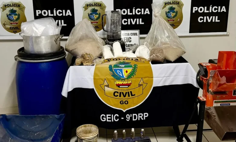 Após mais de um mês de monitoramento e diligências investigativas, foram obtidas informações de que o investigado armazenava e comercializava entorpecentes em grande quantidade no município de Catalão. Diante dos indícios, a equipe policial realizou a abordagem no bairro Alvino Albino e, na sequência, cumpriu mandado de busca e aprensão em uma propriedade rural da região, onde localizou e apreendeu aproximadamente 15,6 quilos de pasta-base de cocaína e 570 gramas de crack.
