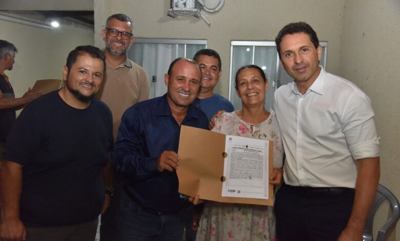 O prefeito de Aparecida de Goiânia, Leandro Vilela, entregou na noite desta quinta-feira (16), 26 escrituras definitivas a moradores do setor Retiro do Bosque, durante visita realizada na casa da moradora Dona Maria Margarida de Oliveira, conhecida como Guida Oliveira. A ação garante segurança jurídica às famílias que, há mais de uma década, aguardavam pela regularização dos imóveis onde vivem.
