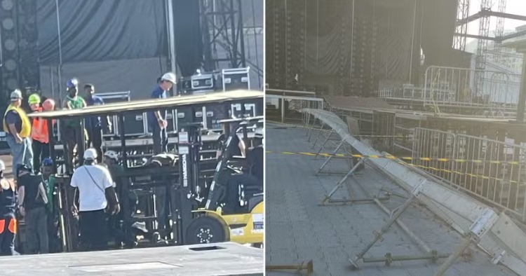 Segundo a Polícia Militar, uma estrutura de montagem de palco desabou e atingiu o operário. O Corpo de Bombeiros informou que os membros inferiores da vítima foram esmagados em um sistema de elevação da estrutura.